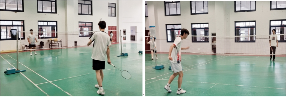 在三人四足比赛中,队员们并排站立,用绑腿绳将相邻两人的相邻两条腿绑在一起,形成“三人四足”,沿着赛道前行,以最后一名队员通过终点线的时间为准进行排名。趣味接力赛中,队员们在室内操场设置的起点和终点间接力传递羽毛球,中间还需捡起掉落的羽毛球继续比赛。