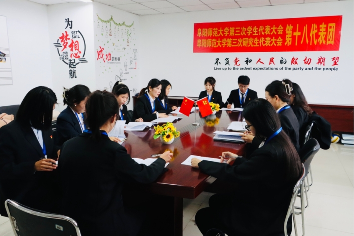 紧接着,各代表团召开分团会议,研讨《阜阳师范大学第二届学生委员会工作报告》和《阜阳师范大学第二届研究生委员会工作报告》、大会工作提案工作报告、阜阳师范大学第三届学生委员会、研究生委员会委员候选人及主席团建议名单、学生会及研究生会章程及大会选举办法,推荐大会选举总监票人、监票人、总计票人、计票人名单。随后,主席团听取并审议各代表团对以上工作内容的意见与决议,并确定大会总监票人、监票人、总计票人、计票人名单。